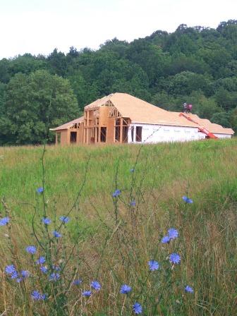 July 1, 2008: Photo showing the rear of the house. A windowed cupola will be placed at the top of the upper roof.