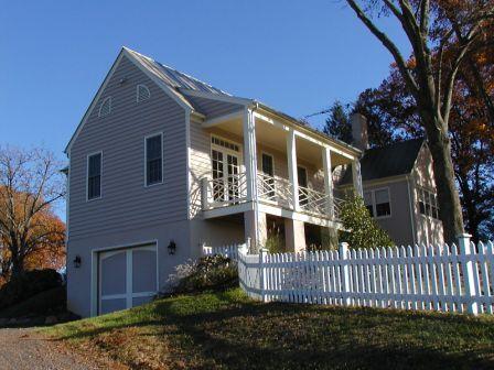 Here is one of the most frequently encountered remodeling programs. The owners have a charming older home in a beautiful location, and want to add a first-floor master bedroom suite. The resulting design follows the grade as it slopes to the farm driveway to provide garage in the lower level. The porch is oriented to feature a view of the restored c. 1741 log cabin on the property.