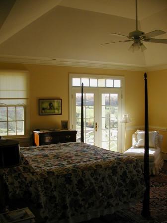 Master bedroom with view to pastures and cabin beyond