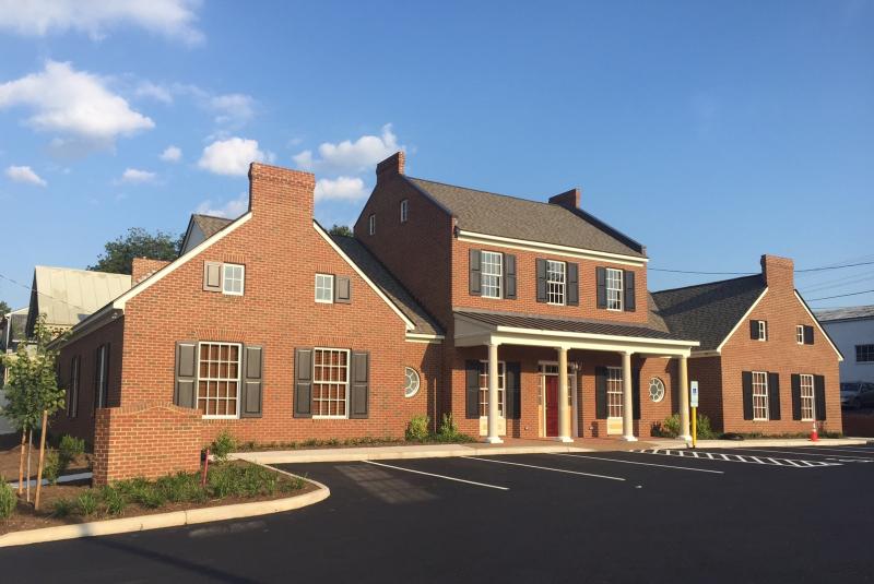 Downtown Culpeper revitalization continues with the completion of the new headquarters building for Brown Harris Wealth Management. Previously the site of NAPA Auto Parts, a donut shop, a service station as well as the original location of the 19th century cottage now around the corner, the new building recalls the historic form & scale of the 18th & 19th century residences that originally lined Coleman (now Main) Street.